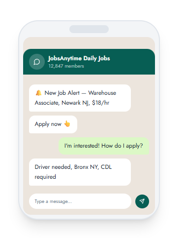 We run active WhatsApp groups with over 12,000 members across New York, New Jersey, and the Tristate area. New jobs posted daily. Join free and never miss an opportunity.